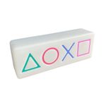 Luminária Playstation Controls Decoração Setup RetangularAdicione um toque moderno e estilizado ao seu setup com a Luminária Playstation Controls. Ideal para gamers e entusiastas de tecnologia, esta luminária retangular oferece uma iluminação eficiente e é perfeita para decorar seu espaço de jogos.- Design Temático: Inspirada nos icônicos controles de Playstation, é ideal para personalizar e embelezar seu setup de jogos com um toque de nostalgia e paixão pelos games.- Formato Retangular: O design retangular proporciona uma iluminação uniforme e contemporânea, adaptando-se bem a diversas configurações e destacando seu espaço de maneira estilosa.- Iluminação Eficiente: A luz emitida é clara e eficaz, iluminando bem o ambiente sem causar desconforto aos olhos, criando um ambiente acolhedor e agradável para jogar ou trabalhar.- Decoração do Setup: Perfeita para complementar e decorar seu setup de jogos, trazendo um elemento visual que reflete seu interesse por games e tecnologia.Especificações do produto:Material: Plástico polietileno, componentes eletrônicosDimensões: 11 x 30 x 7,5 cmTensão: Bivolt (110/220V)Informações de conservação: Limpar com pano úmidoInformações adicionais: Utiliza lâmpada LED até 10W ou fluorescente compacta (lâmpada NÃO inclusa). Para troca de lâmpada você precisará de uma chave philips pequena.Adicione um toque moderno e estilizado ao seu setup com a Luminária Playstation Controls. Ideal para gamers e entusiastas de tecnologia, esta luminária retangular oferece uma iluminação eficiente e é perfeita para decorar seu espaço de jogos.- Design Temático: Inspirada nos icônicos controles de Playstation, é ideal para personalizar e embelezar seu setup de jogos com um toque de nostalgia e paixão pelos games.- Formato Retangular: O design retangular proporciona uma iluminação uniforme e contemporânea, adaptando-se bem a diversas configurações e destacando seu espaço de maneira estilosa.- Iluminação Eficiente: A luz emitida é clara e eficaz, iluminando bem o ambiente sem causar desconforto aos olhos, criando um ambiente acolhedor e agradável para jogar ou trabalhar.- Decoração do Setup: Perfeita para complementar e decorar seu setup de jogos, trazendo um elemento visual que reflete seu interesse por games e tecnologia.Especificações do produto:Material: Plástico polietileno, componentes eletrônicosDimensões: 11 x 30 x 7,5 cmTensão: Bivolt (110/220V)Informações de conservação: Limpar com pano úmidoInformações adicionais: Utiliza lâmpada LED até 10W ou fluorescente compacta (lâmpada NÃO inclusa). Para troca de lâmpada você precisará de uma chave philips pequena.