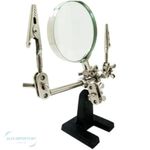 Lupa De Bancada Mesa Com Suporte Pinça Pra Ferro De Solda VALOR REFERENTE A UNIDADE Serve para fixar a peça a ser soldada ou retrabalhada, para melhor visualização dos componentes a serem soldados, e suporte para apoiar o ferro de solda no momento de descanso e análise do equipamento.- Produto excelente para laboratórios de equipamentos eletrônicos e outros. - Lente de 6 cm de diâmetro com aumento de aproximadamente 2,5X- Duas garras (jacaré) em metal para segurar firmemente os objetos- Braços articulados com várias posições de ajuste, tanto para a lupa quanto para as garras- Base em ferro fundido, seu peso ajuda a dar estabilidade na ferramenta- Suporte para colocar ferro de solda, super prático- Dimensões: Altura máxima: 20 cm, Largura máxima: 28 cm