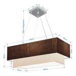 Lustre Pendente Duplo Retangular Vivare Md-4322 Cúpula Em Tecido 99x40cm X 80x30cm - Bivolt Café-linho-bege 127/220vLustre Pendente Duplo Retangular Vivare Md-4322 Cúpula em Tecido 99x40cm x 80x30cm - BivoltVocê já deve ter reparado que os pendente retangular duplo são luminária suspensa que oferecem um charme único aos espaços e estão cada vez mais presentes na decoração. Utilizamos em nossa casa em uma mesa de jantar e só escolha a cor da cúpula em tecido que mais combine com seu ambientes.DimensãoCúpula em Tecido: 25x99x40cmFormato: retangularTamanho: GrandeFio e Cabo Ajustável: Altura 1,85 metrosTipo Pendente: TetoEspecificaçãoMateriais: Cúpula em TecidoCanopla Teto: Alumínio quadrado 12x12x2cmFechamento Tampa inferior (sim)Resistente: á maresiaVoltagem: 110V/220VTipo de Soquete: e27Tipos de Lâmpada: Led Bulbo Até 16w ou Fluorescente Espiral Até 25w CadaQuantidade de lâmpada necessária 4ObservaçãoAcompanha Lâmpada: nãoPossui Led Integrado: nãoGarantia: 12 mesesManual de Instalação: simPendente Montado: simControle de Luminosidade: nãoPeso do produto 3,300 kgTipo de Embalagem: CaixaFixação em teto de gesso, forro de pvc, forro madeira, reboco, alvenaria, tijolo etc