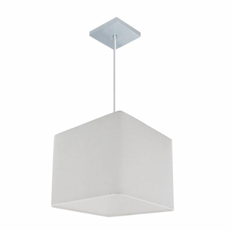 Lustre Pendente Quadrado Md-4058 Cúpula Em Tecido 21/25x25cm Branco - BivoltLustre Pendente Quadrado Md-4058 Cúpula Tecido 21/25x25cm BrancoPendente quadrado apresenta facilidade na instalação e manutenção e limpeza, além de possibilitar o ajuste da altura de acordo com suas necessidades. O que oferecem um charme único aos espaços e estão cada vez mais presentes na decoração.DimensãoCúpula em Tecido: 21x25x25cmFormato: QuadradoTamanho: PequenoFio e Cabo Ajustável: 185cmTipo Pendente: TetoEspecificaçãoMateriais: Cúpula em TecidoCanopla Teto: Alumínio Quadrado 12x12cm Cor PrataCúpula: Sem TampaResistente: Á MaresiaVoltagem: 110V/220VTipo de Soquete: E27Tipos de lâmpada: Led Bulbo Até 16w ou Fluorescente Espiral Até 25w CadaCapacidade de lâmpada: 1ObservaçãoAcompanha Lâmpada: NãoPossui Led Integrado: NãoGarantia: 12 MesesManual de Instalação: SimPendente Montado: SimControle de Luminosidade: NãoTipo de Embalagem: CaixaFixaçãoForro de laje, Forro de gesso acartonado, Forro de madeira, Forro de lã de vidro, Forro de PVC, Forro modular, Forro alvenaria.Conservação e Manutenção do ProdutoA Limpeza deve ser realizada com o produto desligado. Remova o lustre que pode ser lavado com sabão neutro. Nunca utilize produtos químicos e abrasivosDicaAntes de comprar o seu produto verifique as medidas, o local onde pretende instalar e se necessário o serviço de um profissional qualificado.