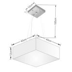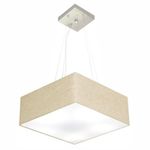 Lustre Pendente Quadrado Md-4194 Cúpula Em Tecido 12/40x40cm Rustico Bege - BivoltLustre Pendente Quadrado Md-4194 Cúpula Tecido 12/40x40cm Rustico BegePendente quadrado apresenta facilidade na instalação e manutenção e limpeza, além de possibilitar o ajuste da altura de acordo com suas necessidades. O que oferecem um charme único aos espaços e estão cada vez mais presentes na decoração.DimensãoCúpula em Tecido: 12x40x40cmFormato: QuadradoTamanho: PequenoFio e Cabo Ajustável: 185cmTipo Pendente: TetoEspecificaçãoMateriais: Cúpula em TecidoCanopla Teto: Alumínio Quadrado 12x12cm Cor PrataCúpula Com Tampa: InferiorResistente: Á MaresiaVoltagem: 110V/220VTipo de Soquete: E27Tipos de lâmpada: Led Bulbo Até 16w ou Fluorescente Espiral Até 25w CadaCapacidade de lâmpadas: 3ObservaçãoAcompanha Lâmpada: NãoPossui Led Integrado: NãoGarantia: 12 MesesManual de Instalação: SimPendente Montado: SimControle de Luminosidade: NãoTipo de Embalagem: CaixaFixaçãoForro de laje, Forro de gesso acartonado, Forro de madeira, Forro de lã de vidro, Forro de PVC, Forro modular, Forro alvenaria.Conservação e Manutenção do ProdutoA Limpeza deve ser realizada com o produto desligado. Remova o lustre que pode ser lavado com sabão neutro. Nunca utilize produtos químicos e abrasivosDicaAntes de comprar o seu produto verifique as medidas, o local onde pretende instalar e se necessário o serviço de um profissional qualificado.