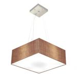 Lustre Pendente Quadrado Md-4196 Cúpula Em Tecido 15/45x45cm Palha - BivoltLustre Pendente Quadrado Md-4196 Cúpula Tecido 15/45x45cm PalhaPendente quadrado apresenta facilidade na instalação e manutenção e limpeza, além de possibilitar o ajuste da altura de acordo com suas necessidades. O que oferecem um charme único aos espaços e estão cada vez mais presentes na decoração.DimensãoCúpula em Tecido: 15x45x45cmFormato: QuadradoTamanho: MédioFio e Cabo Ajustável: 185cmTipo Pendente: TetoEspecificaçãoMateriais: Cúpula em TecidoCanopla Teto: Alumínio Quadrado 12x12cm Cor PrataCúpula Com Tampa: InferiorResistente: Á MaresiaVoltagem: 110V/220VTipo de Soquete: E27Tipos de lâmpada: Led Bulbo Até 16w ou Fluorescente Espiral Até 25w CadaCapacidade de lâmpadas: 3ObservaçãoAcompanha Lâmpada: NãoPossui Led Integrado: NãoGarantia: 12 MesesManual de Instalação: SimPendente Montado: SimControle de Luminosidade: NãoTipo de Embalagem: CaixaFixaçãoForro de laje, Forro de gesso acartonado, Forro de madeira, Forro de lã de vidro, Forro de PVC, Forro modular, Forro alvenaria.Conservação e Manutenção do ProdutoA Limpeza deve ser realizada com o produto desligado. Remova o lustre que pode ser lavado com sabão neutro. Nunca utilize produtos químicos e abrasivosDicaAntes de comprar o seu produto verifique as medidas, o local onde pretende instalar e se necessário o serviço de um profissional qualificado.