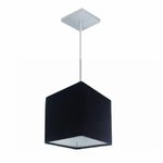 Lustre Pendente Quadrado Md-4223 Cúpula Em Tecido 15/13x13cm Preto - BivoltLustre Pendente Quadrado Md-4223 Cúpula Tecido 15/13x13cm PretoPendente quadrado apresenta facilidade na instalação e manutenção e limpeza, além de possibilitar o ajuste da altura de acordo com suas necessidades. O que oferecem um charme único aos espaços e estão cada vez mais presentes na decoração.DimensãoCúpula em Tecido: 15x13x13cmFormato: QuadradoTamanho: PequenoFio e Cabo Ajustável: 185cmTipo Pendente: TetoEspecificaçãoMateriais: Cúpula em TecidoCanopla Teto: Alumínio Quadrado 12x12cm Cor PrataCúpula: Sem TampaResistente: Á MaresiaVoltagem: 110V/220VTipo de Soquete: E27Tipos de lâmpada: Led Bulbo Até 16w ou Fluorescente Espiral Até 25w CadaCapacidade de lâmpada: 1ObservaçãoAcompanha Lâmpada: NãoPossui Led Integrado: NãoGarantia: 12 MesesManual de Instalação: SimPendente Montado: SimControle de Luminosidade: NãoTipo de Embalagem: CaixaFixaçãoForro de laje, Forro de gesso acartonado, Forro de madeira, Forro de lã de vidro, Forro de PVC, Forro modular, Forro alvenaria.Conservação e Manutenção do ProdutoA Limpeza deve ser realizada com o produto desligado. Remova o lustre que pode ser lavado com sabão neutro. Nunca utilize produtos químicos e abrasivosDicaAntes de comprar o seu produto verifique as medidas, o local onde pretende instalar e se necessário o serviço de um profissional qualificado.