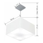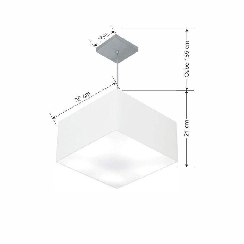 Lustre Pendente Quadrado Vivare Md-4020 Cúpula Em Tecido 21/35x35cm - Bivolt Branco 127/220vLustre Pendente Quadrado Vivare Md-4020 Cúpula Tecido 21/35x35cmPendente quadrado apresenta facilidade na instalação e manutenção e limpeza, além de possibilitar o ajuste da altura de acordo com suas necessidades. O que oferecem um charme único aos espaços e estão cada vez mais presentes na decoração.DimensãoCúpula em Tecido: 21x35x35cmFormato: QuadradoTamanho: PequenoFio e Cabo Ajustável: 185cmTipo Pendente: TetoEspecificaçãoMateriais: Cúpula em TecidoCanopla Teto: Alumínio Quadrado 12x12cm Cor PrataCúpula Com Tampa: InferiorResistente: Á MaresiaVoltagem: 110V/220VTipo de Soquete: E27Tipos de lâmpada: Led Bulbo Até 16w ou Fluorescente Espiral Até 25w CadaCapacidade de lâmpadas: 3ObservaçãoAcompanha Lâmpada: NãoPossui Led Integrado: NãoGarantia: 12 MesesManual de Instalação: SimPendente Montado: SimControle de Luminosidade: NãoTipo de Embalagem: CaixaFixaçãoForro de laje, Forro de gesso acartonado, Forro de madeira, Forro de lã de vidro, Forro de PVC, Forro modular, Forro alvenaria.Conservação e Manutenção do ProdutoA Limpeza deve ser realizada com o produto desligado. Remova o lustre que pode ser lavado com sabão neutro. Nunca utilize produtos químicos e abrasivosDicaAntes de comprar o seu produto verifique as medidas, o local onde pretende instalar e se necessário o serviço de um profissional qualificado.
