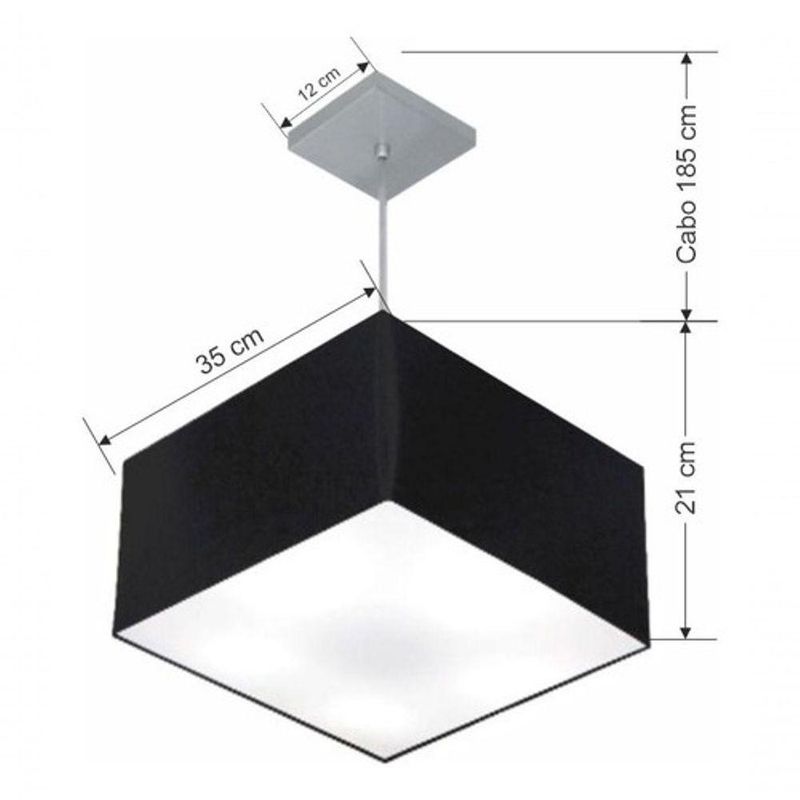 Lustre Pendente Quadrado Vivare Md-4020 Cúpula Em Tecido 21/35x35cm - Bivolt Preto 127/220vLustre Pendente Quadrado Vivare Md-4020 Cúpula Tecido 21/35x35cmPendente quadrado apresenta facilidade na instalação e manutenção e limpeza, além de possibilitar o ajuste da altura de acordo com suas necessidades. O que oferecem um charme único aos espaços e estão cada vez mais presentes na decoração.DimensãoCúpula em Tecido: 21x35x35cmFormato: QuadradoTamanho: PequenoFio e Cabo Ajustável: 185cmTipo Pendente: TetoEspecificaçãoMateriais: Cúpula em TecidoCanopla Teto: Alumínio Quadrado 12x12cm Cor PrataCúpula Com Tampa: InferiorResistente: Á MaresiaVoltagem: 110V/220VTipo de Soquete: E27Tipos de lâmpada: Led Bulbo Até 16w ou Fluorescente Espiral Até 25w CadaCapacidade de lâmpadas: 3ObservaçãoAcompanha Lâmpada: NãoPossui Led Integrado: NãoGarantia: 12 MesesManual de Instalação: SimPendente Montado: SimControle de Luminosidade: NãoTipo de Embalagem: CaixaFixaçãoForro de laje, Forro de gesso acartonado, Forro de madeira, Forro de lã de vidro, Forro de PVC, Forro modular, Forro alvenaria.Conservação e Manutenção do ProdutoA Limpeza deve ser realizada com o produto desligado. Remova o lustre que pode ser lavado com sabão neutro. Nunca utilize produtos químicos e abrasivosDicaAntes de comprar o seu produto verifique as medidas, o local onde pretende instalar e se necessário o serviço de um profissional qualificado.