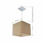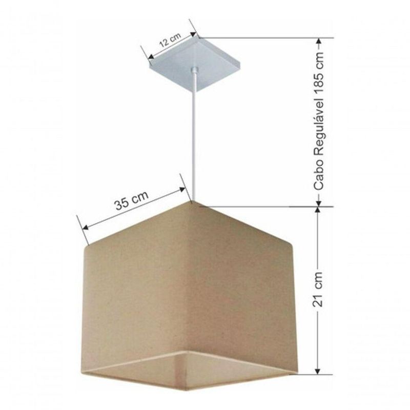 Lustre Pendente Quadrado Vivare Md-4059 Cúpula Em Tecido 21/35x35cm - Bivolt Algodão-crú 127/220vLustre Pendente Quadrado Vivare Md-4059 Cúpula Tecido 21/35x35cmPendente quadrado apresenta facilidade na instalação e manutenção e limpeza, além de possibilitar o ajuste da altura de acordo com suas necessidades. O que oferecem um charme único aos espaços e estão cada vez mais presentes na decoração.DimensãoCúpula em Tecido: 21x35x35cmFormato: QuadradoTamanho: PequenoFio e Cabo Ajustável: 185cmTipo Pendente: TetoEspecificaçãoMateriais: Cúpula em TecidoCanopla Teto: Alumínio Quadrado 12x12cm Cor PrataCúpula: Sem TampaResistente: Á MaresiaVoltagem: 110V/220VTipo de Soquete: E27Tipos de lâmpada: Led Bulbo Até 16w ou Fluorescente Espiral Até 25w CadaCapacidade de lâmpada: 1ObservaçãoAcompanha Lâmpada: NãoPossui Led Integrado: NãoGarantia: 12 MesesManual de Instalação: SimPendente Montado: SimControle de Luminosidade: NãoTipo de Embalagem: CaixaFixaçãoForro de laje, Forro de gesso acartonado, Forro de madeira, Forro de lã de vidro, Forro de PVC, Forro modular, Forro alvenaria.Conservação e Manutenção do ProdutoA Limpeza deve ser realizada com o produto desligado. Remova o lustre que pode ser lavado com sabão neutro. Nunca utilize produtos químicos e abrasivosDicaAntes de comprar o seu produto verifique as medidas, o local onde pretende instalar e se necessário o serviço de um profissional qualificado.