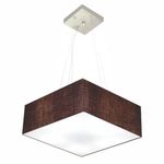 Lustre Pendente Quadrado Vivare Md-4194 Cúpula Em Tecido 12/40x40cm - Bivolt Café 127/220vLustre Pendente Quadrado Vivare Md-4194 Cúpula Tecido 12/40x40cmPendente quadrado apresenta facilidade na instalação e manutenção e limpeza, além de possibilitar o ajuste da altura de acordo com suas necessidades. O que oferecem um charme único aos espaços e estão cada vez mais presentes na decoração.DimensãoCúpula em Tecido: 12x40x40cmFormato: QuadradoTamanho: PequenoFio e Cabo Ajustável: 185cmTipo Pendente: TetoEspecificaçãoMateriais: Cúpula em TecidoCanopla Teto: Alumínio Quadrado 12x12cm Cor PrataCúpula Com Tampa: InferiorResistente: Á MaresiaVoltagem: 110V/220VTipo de Soquete: E27Tipos de lâmpada: Led Bulbo Até 16w ou Fluorescente Espiral Até 25w CadaCapacidade de lâmpadas: 3ObservaçãoAcompanha Lâmpada: NãoPossui Led Integrado: NãoGarantia: 12 MesesManual de Instalação: SimPendente Montado: SimControle de Luminosidade: NãoTipo de Embalagem: CaixaFixaçãoForro de laje, Forro de gesso acartonado, Forro de madeira, Forro de lã de vidro, Forro de PVC, Forro modular, Forro alvenaria.Conservação e Manutenção do ProdutoA Limpeza deve ser realizada com o produto desligado. Remova o lustre que pode ser lavado com sabão neutro. Nunca utilize produtos químicos e abrasivosDicaAntes de comprar o seu produto verifique as medidas, o local onde pretende instalar e se necessário serviço de um profissional qualificado.