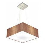 Lustre Pendente Quadrado Vivare Md-4196 Cúpula Em Tecido 15/45x45cm - Bivolt Palha 127/220vLustre Pendente Quadrado Vivare Md-4196 Cúpula Tecido 15/45x45cmPendente quadrado apresenta facilidade na instalação e manutenção e limpeza, além de possibilitar o ajuste da altura de acordo com suas necessidades. O que oferecem um charme único aos espaços e estão cada vez mais presentes na decoração.DimensãoCúpula em Tecido: 15x45x45cmFormato: QuadradoTamanho: MédioFio e Cabo Ajustável: 185cmTipo Pendente: TetoEspecificaçãoMateriais: Cúpula em TecidoCanopla Teto: Alumínio Quadrado 12x12cm Cor PrataCúpula Com Tampa: InferiorResistente: Á MaresiaVoltagem: 110V/220VTipo de Soquete: E27Tipos de lâmpada: Led Bulbo Até 16w ou Fluorescente Espiral Até 25w CadaCapacidade de lâmpadas: 3ObservaçãoAcompanha Lâmpada: NãoPossui Led Integrado: NãoGarantia: 12 MesesManual de Instalação: SimPendente Montado: SimControle de Luminosidade: NãoTipo de Embalagem: CaixaFixaçãoForro de laje, Forro de gesso acartonado, Forro de madeira, Forro de lã de vidro, Forro de PVC, Forro modular, Forro alvenaria.Conservação e Manutenção do ProdutoA Limpeza deve ser realizada com o produto desligado. Remova o lustre que pode ser lavado com sabão neutro. Nunca utilize produtos químicos e abrasivosDicaAntes de comprar o seu produto verifique as medidas, o local onde pretende instalar e se necessário serviço de um profissional qualificado.