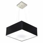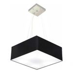 Lustre Pendente Quadrado Vivare Md-4196 Cúpula Em Tecido 15/45x45cm - Bivolt Preto 127/220vLustre Pendente Quadrado Vivare Md-4196 Cúpula Tecido 15/45x45cmPendente quadrado apresenta facilidade na instalação e manutenção e limpeza, além de possibilitar o ajuste da altura de acordo com suas necessidades. O que oferecem um charme único aos espaços e estão cada vez mais presentes na decoração.DimensãoCúpula em Tecido: 15x45x45cmFormato: QuadradoTamanho: MédioFio e Cabo Ajustável: 185cmTipo Pendente: TetoEspecificaçãoMateriais: Cúpula em TecidoCanopla Teto: Alumínio Quadrado 12x12cm Cor PrataCúpula Com Tampa: InferiorResistente: Á MaresiaVoltagem: 110V/220VTipo de Soquete: E27Tipos de lâmpada: Led Bulbo Até 16w ou Fluorescente Espiral Até 25w CadaCapacidade de lâmpadas: 3ObservaçãoAcompanha Lâmpada: NãoPossui Led Integrado: NãoGarantia: 12 MesesManual de Instalação: SimPendente Montado: SimControle de Luminosidade: NãoTipo de Embalagem: CaixaFixaçãoForro de laje, Forro de gesso acartonado, Forro de madeira, Forro de lã de vidro, Forro de PVC, Forro modular, Forro alvenaria.Conservação e Manutenção do ProdutoA Limpeza deve ser realizada com o produto desligado. Remova o lustre que pode ser lavado com sabão neutro. Nunca utilize produtos químicos e abrasivosDicaAntes de comprar o seu produto verifique as medidas, o local onde pretende instalar e se necessário serviço de um profissional qualificado.