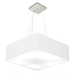 Lustre Pendente Quadrado Vivare Md-4198 Cúpula Em Tecido 15/60x60cm - Bivolt Branco 127/220vLustre Pendente Quadrado Vivare Md-4198 Cúpula Tecido 15/60x60cmPendente quadrado apresenta facilidade na instalação e manutenção e limpeza, além de possibilitar o ajuste da altura de acordo com suas necessidades. O que oferecem um charme único aos espaços e estão cada vez mais presentes na decoração.DimensãoCúpula em Tecido: 15x60x60cmFormato: QuadradoTamanho: GrandeFio e Cabo Ajustável: 185cmTipo Pendente: TetoEspecificaçãoMateriais: Cúpula em TecidoCanopla Teto: Alumínio Quadrado 12x12cm Cor PrataCúpula Com Tampa: InferiorResistente: Á MaresiaVoltagem: 110V/220VTipo de Soquete: E27Tipos de lâmpada: Led Bulbo Até 16w ou Fluorescente Espiral Até 25w CadaCapacidade de lâmpadas: 5ObservaçãoAcompanha Lâmpada: NãoPossui Led Integrado: NãoGarantia: 12 MesesManual de Instalação: SimPendente Montado: SimControle de Luminosidade: NãoTipo de Embalagem: CaixaFixaçãoForro de laje, Forro de gesso acartonado, Forro de madeira, Forro de lã de vidro, Forro de PVC, Forro modular, Forro alvenaria.Conservação e Manutenção do ProdutoA Limpeza deve ser realizada com o produto desligado. Remova o lustre que pode ser lavado com sabão neutro. Nunca utilize produtos químicos e abrasivosDicaAntes de comprar o seu produto verifique as medidas, o local onde pretende instalar e se necessário serviço de um profissional qualificado.