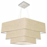 Lustre Pendente Triplo Quadrado Md-4165 Cúpula Em Tecido 80x70x60cm Rustico Bege - BivoltLustre Pendente Triplo Quadrado Md-4165 Cúpula em Tecido 80x70x60cm Rustico BegePendente Triplo Quadrado Moderno Indicado para decoração de Mesa de Jantar, Sala, Sala de Estar, Sala de Jantar, Suíte, Quartos, Mezanino, Corredor, Balcão, Lojas, Comércios, Sala com Cozinha integrados, Bares e Restaurante, Sala de Tv.DimensãoCúpula em Tecido: 30x80x70x60cmFormato: QuadradoTamanho: GrandeFio e Cabo Ajustável: 500cmTipo Pendente: TetoEspecificaçãoMateriais: Cúpula em TecidoCanopla Teto: Alumínio Diâmetro 12x2cm Cor PrataCúpula Com Tampa: InferiorResistente: Á MaresiaVoltagem: 110V/220VTipo de Soquete: E27Tipos de lâmpada: Led Bulbo Até 16w ou Fluorescente Espiral Até 25w CadaCapacidade de lâmpadas: 5ObservaçãoAcompanha Lâmpada: NãoPossui Led Integrado: NãoGarantia: 12 MesesManual de Instalação: SimPendente Montado: SimControle de Luminosidade: NãoTipo de Embalagem: CaixaFixaçãoForro de laje, Forro de gesso acartonado, Forro de madeira, Forro de lã de vidro, Forro de PVC, Forro modular, Forro alvenaria.Conservação e Manutenção do ProdutoA Limpeza deve ser realizada com o produto desligado. Remova o lustre que pode ser lavado com sabão neutro. Nunca utilize produtos químicos e abrasivosDicaAntes de comprar o seu produto verifique as medidas, o local onde pretende instalar e se necessário o serviço de um profissional qualificado.