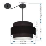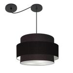 Lustre Sala De Jantar Com Desvio Vivare Md-4399 Cúpula Em Tecido 50cm Preto 127/220vLustre de Jantar Com Desvio Vivare Md-4399 Cúpula em Tecido 50cm - BivoltOs lustres sala de jantar com desvio podem ter diferentes Formato:, tamanhos e acessórios para fazer o deslocamento, permitindo que você escolha a posição onde melhor se adequa às necessidades da sua mesa sala de jantar. Para a iluminação geral, ou seja, para clárear todo o ambiente de forma uniforme, os lustres com várias lâmpadas e iluminação difusa são excelentes opções.DimensãoCúpula em Tecido: 45x50x45cmFormato: CilíndricoTamanho: MédioFio e Cabo Ajustável: Altura 3,0 MetrosTipo Pendente: TetoEspecificaçãoMateriais: Cúpula em Tecido2 Canopla Teto Alumínio Diâmetro 12x2cm Cor PretaCúpula Com Tampa: InferiorResistente: Á MaresiaVoltagem: 110V/220VTipo de Soquete: E27Tipos de lâmpada: Led Bulbo Até 16w ou Fluorescente Espiral Até 25w CadaCapacidade de lâmpadas: 3ObservaçãoAcompanha Lâmpada: NãoPossui Led Integrado: NãoGarantia: 12 MesesManual de Instalação: SimPendente Montado: SimControle de Luminosidade: NãoTipo de Embalagem: CaixaFixaçãoForro de laje, Forro de gesso acartonado, Forro de madeira, Forro de lã de vidro, Forro de PVC, Forro modular, Forro alvenaria.Conservação e Manutenção do ProdutoA Limpeza deve ser realizada com o produto desligado. Remova o lustre que pode ser lavado com sabão neutro. Nunca utilize produtos químicos e abrasivosDicaAntes de comprar o seu produto verifique as medidas, o local onde pretende instalar e se necessário o serviço de um profissional qualificado.