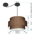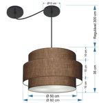 Lustre Sala De Jantar Com Desvio Vivare Md-4401 Cúpula Em Tecido 60cm Café 127/220vLustre de Jantar Com Desvio Vivare Md-4401 Cúpula em Tecido 60cm - BivoltOs lustres sala de jantar com desvio podem ter diferentes Formato:, tamanhos e acessórios para fazer o deslocamento, permitindo que você escolha a posição onde melhor se adequa às necessidades da sua mesa sala de jantar. Para a iluminação geral, ou seja, para clárear todo o ambiente de forma uniforme, os lustres com várias lâmpadas e iluminação difusa são excelentes opções.DimensãoCúpula em Tecido: 50x60x50cmFormato: CilíndricoTamanho: GrandeFio e Cabo Ajustável: Altura 3,0 MetrosTipo Pendente: TetoEspecificaçãoMateriais: Cúpula em Tecido2 Canopla Teto Alumínio Diâmetro 12x2cm Cor PretaCúpula Com Tampa: InferiorResistente: Á MaresiaVoltagem: 110V/220VTipo de Soquete: E27Tipos de lâmpada: Led Bulbo Até 16w ou Fluorescente Espiral Até 25w CadaCapacidade de lâmpadas: 3ObservaçãoAcompanha Lâmpada: NãoPossui Led Integrado: NãoGarantia: 12 MesesManual de Instalação: SimPendente Montado: SimControle de Luminosidade: NãoTipo de Embalagem: CaixaFixaçãoForro de laje, Forro de gesso acartonado, Forro de madeira, Forro de lã de vidro, Forro de PVC, Forro modular, Forro alvenaria.Conservação e Manutenção do ProdutoA Limpeza deve ser realizada com o produto desligado. Remova o lustre que pode ser lavado com sabão neutro. Nunca utilize produtos químicos e abrasivosDicaAntes de comprar o seu produto verifique as medidas, o local onde pretende instalar e se necessário o serviço de um profissional qualificado.