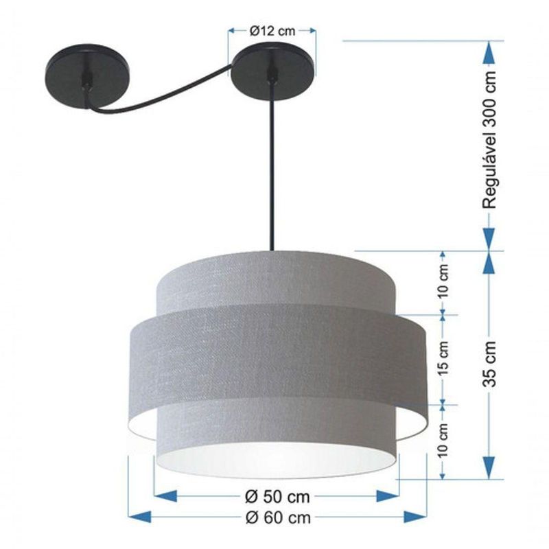Lustre Sala De Jantar Com Desvio Vivare Md-4401 Cúpula Em Tecido 60cm Rustico-cinza 127/220vLustre de Jantar Com Desvio Vivare Md-4401 Cúpula em Tecido 60cm - BivoltOs lustres sala de jantar com desvio podem ter diferentes Formato:, tamanhos e acessórios para fazer o deslocamento, permitindo que você escolha a posição onde melhor se adequa às necessidades da sua mesa sala de jantar. Para a iluminação geral, ou seja, para clárear todo o ambiente de forma uniforme, os lustres com várias lâmpadas e iluminação difusa são excelentes opções.DimensãoCúpula em Tecido: 50x60x50cmFormato: CilíndricoTamanho: GrandeFio e Cabo Ajustável: Altura 3,0 MetrosTipo Pendente: TetoEspecificaçãoMateriais: Cúpula em Tecido2 Canopla Teto Alumínio Diâmetro 12x2cm Cor PretaCúpula Com Tampa: InferiorResistente: Á MaresiaVoltagem: 110V/220VTipo de Soquete: E27Tipos de lâmpada: Led Bulbo Até 16w ou Fluorescente Espiral Até 25w CadaCapacidade de lâmpadas: 3ObservaçãoAcompanha Lâmpada: NãoPossui Led Integrado: NãoGarantia: 12 MesesManual de Instalação: SimPendente Montado: SimControle de Luminosidade: NãoTipo de Embalagem: CaixaFixaçãoForro de laje, Forro de gesso acartonado, Forro de madeira, Forro de lã de vidro, Forro de PVC, Forro modular, Forro alvenaria.Conservação e Manutenção do ProdutoA Limpeza deve ser realizada com o produto desligado. Remova o lustre que pode ser lavado com sabão neutro. Nunca utilize produtos químicos e abrasivosDicaAntes de comprar o seu produto verifique as medidas, o local onde pretende instalar e se necessário o serviço de um profissional qualificado.