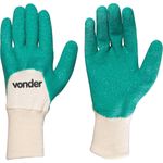 Luva de Malha com Látex, MLV 1002, cor Verde, Tamanho 10, Vonder 10 Verde - Conteúdo da embalagem: 1 Par de luvas. Aplicação: Luva para proteção contra agentes mecânicos escoriantes, abrasivos, cortantes e perfurantes. Destaques: Luvas de segurança, confeccionadas em malha, com revestimento em material sintético na cor verde na região da palma e dedos e punho em malha elástica e acabamento em overloque. Referência: 7025100200 Certificados: 37639 Garantia - E (CDC): Garantia legal: 90 dias Palma: Com revestimento em látex Material: 27% Algodão e 12% poliéster na cor branca com revestimento de 61% de látex Modelo: MLV 1002 Dorso: Ventilado Massa aproximada (peso): 0,104 kg Punho: Malha de algodão Tamanho: 10 Cor: Verde Destaques Comercial: Luvas de segurança em malha com revestimento sintético verde na palma e dedos, punho elástico. Aplicação Comercial: Luva para proteção contra agentes mecânicos: escoriantes, abrasivos, cortantes e perfurantes. Características Gerais do Produto: Garantia: • 3 Meses