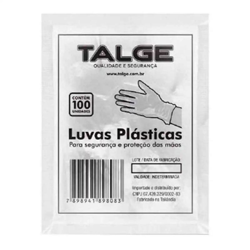 As Luvas Plásticas Talge são indicadas para o uso na verificação de contaminações das superfícies do veículo, além de poderem ser utilizadas para a limpeza detalhada do veículo. Talge Luvas Plásticas são de segurança para proteção das mãos confeccionada em polietileno de alta densidade, ambidestra, com superfície rugosa, inodoro, incolor, com fechamento feito por solda simples em todo o perímetro. Toda a face externa da luva é golfrada por gravação multiponteada em médio relevo, de consistência atóxica e não perecível. Características: Uso ambidestro; Sem pó; Superfície interna lisa para melhor ajuste de colocação; Fabricada em material; 100% polietileno; Cor Transparente; Tamanho Único; Pacote com 100 unidades.