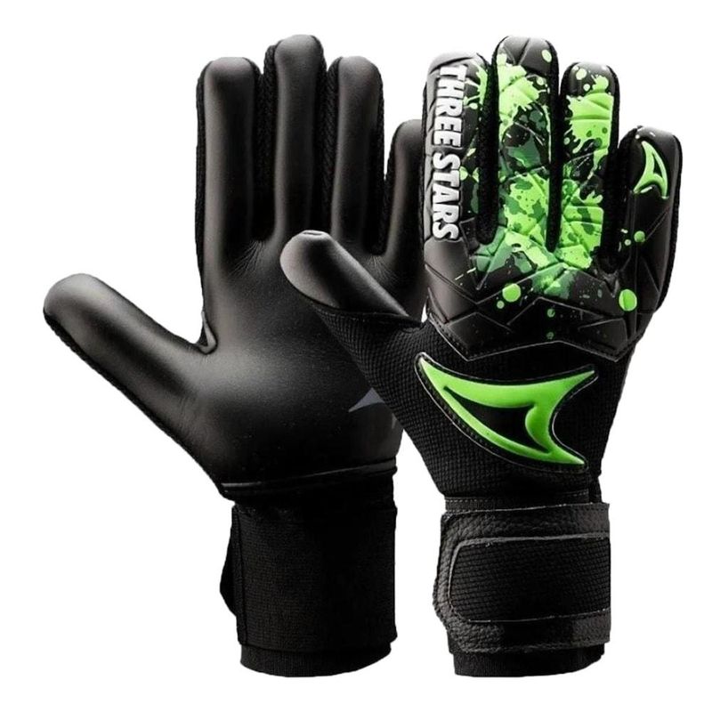 DescriçãoA Luva de Goleiro Campo Three Stars Kick possui látex alemão de de 3mm + 3,5 de espuma extremamente macia e que proporciona uma melhor aderência e amortecimento diante de qualquer situação de jogo. Cinta elástica de 6 cm com duplo ajuste para melhor caimento nas mãos com corte negativo. Modelo: Kick;Cor: Preto/Verde;Gênero: Adulto;Marca: Three Stars;Composição: Latex / Espuma;Tabela de MedidasMedidas aproximadas para BASE de tamanho da Luva:Comprimento da mão x Largura Palma da Mão (SEM dedão) em Centímetros8/P: 18 x 9 cm;9/M: 19 x 9,5 cm;10/G: 20 x 10,5 cm;11/GG: 21 x 11 cm.