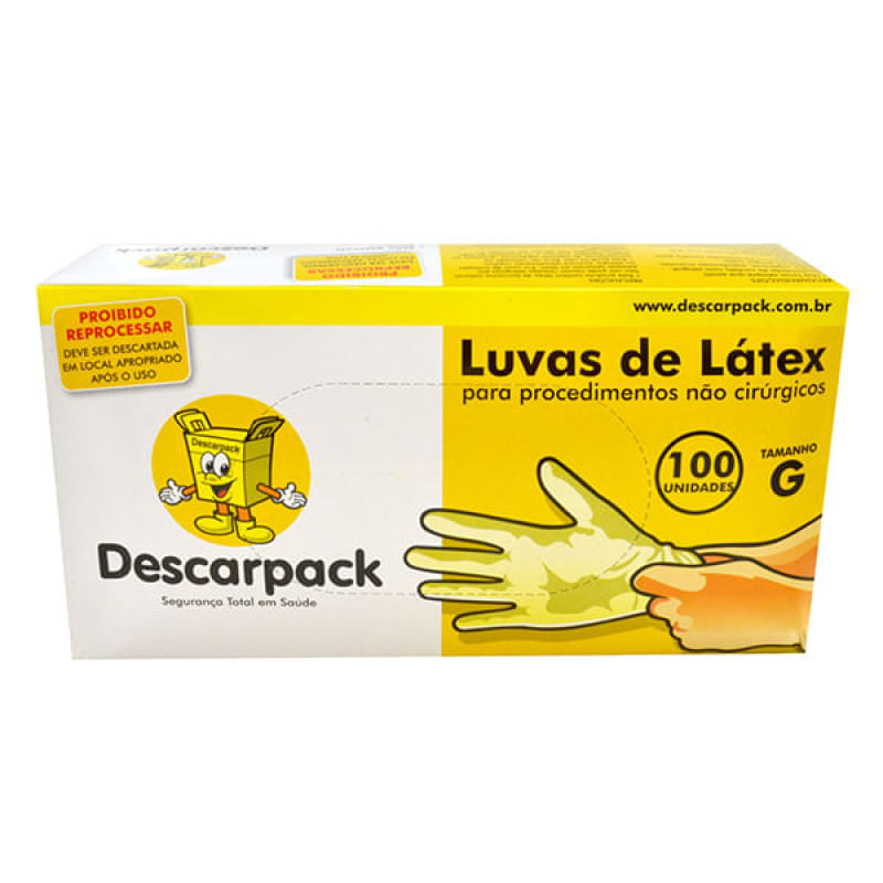 Luva Procedimento Descarpack G 100 UnidadesAs Luvas Descarpack podem ser utilizadas em qualquer procedimento não cirúgico. Feitas totalmente de látex elas contém pó e são de uso único, recomendado descartar após o uso. Ela não é estéril, é ambientada e agora em nova embalagem.