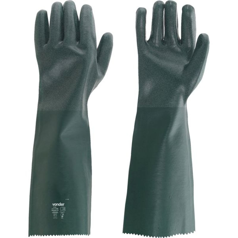 Conteúdo da Embalagem:5 Pares de luvas de PVCDescrição:Luva de PVC áspera com forro, 46 cm, PAV 0046 VONDERAplicações e dicas de uso:Indicada para proteção das mãos contra riscos mecânicos e químicosDestaques e diferenciais:Atende à norma EN-388, que corresponde à proteção do operador contra riscos mecânicos, e ISO 374, que corresponde à proteção do operador contra riscos químicosCaracterísticas Técnicas:Tamanho da palma da luva PVC: 9,5 Comprimento total da luva: 46 cm Cor da luva: Verde Tipo do forro da luva: Algodão Tipo da palma da luva: AsperaGarantia legal: 90 dias