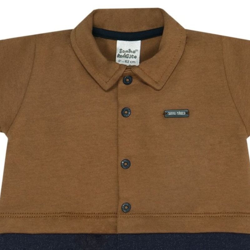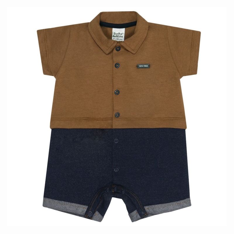 Macacão Bebê Menino Curto Nozes Caramelo / Marinho - Sonho Mágico Sonho Mágico: Conforto e Estilo para o Seu Bebê! Vista o seu pequeno com a Macacão Nozes Sonho Mágico, a escolha perfeita que une estilo atemporal e o máximo conforto para o dia a dia! Confeccinada em 100% algodão, esta peça é sinônimo de suavidade e cuidado com a pele delicada do seu bebê. O tecido é leve, totalmente respirável e foi pensado para ser maleável, permitindo total liberdade de movimento para engatinhar, brincar e descobrir o mundo. Características: Parte Superior:100% Algodão. Parte Inferior: 72% Algodão / 28% Poliéster. Super Confortável e Maleável: Perfeita para brincadeiras e momentos de descanso. Praticidade: Possui botões de pressão em toda parte frontal e na parte inferior. Durabilidade: Uma peça clássica e resistente, ideal para todas as estações. Tamanhos Indicados: P - Veste 2 a 4 meses M - Veste 4 a 6 meses G - Veste 6 a 9 meses GG - Veste 9 a 12 meses Marca: Sonho Mágico Garanta já este clássico essencial que oferece qualidade premium e bem-estar para o seu tesouro!