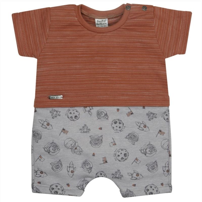 Macacão Bebê Menino Curto Moletinho Terracota / Cinza Astronauta - Sonho Mágico: Conforto e Estilo para o Seu Bebê! Vista o seu pequeno com a Macacão Moletinho Astronauta, a escolha perfeita que une estilo atemporal e o máximo conforto para o dia a dia! Confeccinada em 100% algodão, esta peça é sinônimo de suavidade e cuidado com a pele delicada do seu bebê. O tecido é leve, totalmente respirável e foi pensado para ser maleável, permitindo total liberdade de movimento para engatinhar, brincar e descobrir o mundo. Características: Parte Superior:92% Algodão / 08% Poliéster. Parte Inferior: 30% Algodão / 70% Poliéster. Super Confortável e Maleável: Perfeita para brincadeiras e momentos de descanso. Praticidade: Possui botões de pressão no ombro e na parte inferior. Durabilidade: Uma peça clássica e resistente, ideal para todas as estações. Tamanhos Indicados: P - Veste 2 a 4 meses M - Veste 4 a 6 meses G - Veste 6 a 9 meses GG - Veste 9 a 12 meses Marca: Sonho Mágico Garanta já este clássico essencial que oferece qualidade premium e bem-estar para o seu tesouro!
