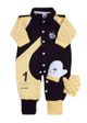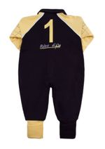Macacão Goleiro Santos Revedor Macacão Infantil Licenciado Rêve D'or Santos Goleiro baby preto, com gola esporte, recortes amarelos, manga longa com reforço acolchoado, bordado do Santos na altura do tórax, estampa na parte inferior e número um nas costas. Com modelagem regular, é confeccionado em malha leve de algodão, que oferece um toque macio na pele de seu bebê. Traz ainda diversos pespontos localizados e fechamento por botões de pressão. Acompanha par de luvas amarelas e brancas. O Macacão Infantil Licenciados Futebol Rêve D'or Santos Goleiro é perfeito para os pequenos torcedores do clube. Características - Composto por um macacão e um par de luvas. - Com o brasão do time bordado. - Tecido leve e confortável. Especificações Técnicas Material: Malha Composição: 100% algodão. Idade Recomendada: Tamanho P - de 1 a 3 meses Tamanho M - de 3 a 6 meses Tamanho G - de 6 a 9 meses Conteúdo da Embalagem: 1 Macacão, 1 par de luvas Recomendações de uso: Seguir corretamente as instruções de lavagem da etiqueta. Produto Oficial Licenciado.