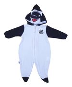 Macacão Bebê Santos Mascote com Gorro Oficial Macacão bebê mascote oficial do Santos, possui estampa da baleia com escudo do Santos. Uma ótima opção para deixar o seu bebê caracterizado com as cores do Peixão, com muita fofura. Características: * Composição 100% algodão. * Elástico no punho. * Fecho em botão lateral e nas perninhas. * Capuz com estampa de mascote. Especificações Técnicas Material: 100% Algodão. Idade Recomendada: Tamanho P - de 1 a 3 meses Tamanho M - de 3 a 6 meses Tamanho G - de 6 a 9 meses Conteúdo da Embalagem: Macacão Recomendações de uso: Seguir corretamente as instruções de lavagem da etiqueta. Produto Oficial Licenciado.