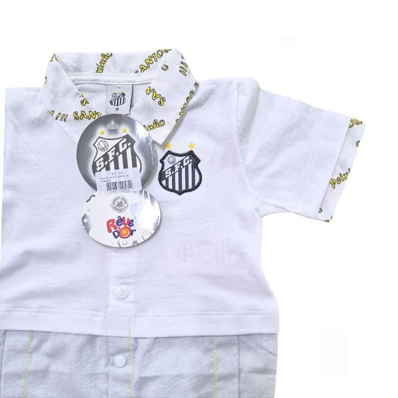 Macacão Bebê Santos Oxford Oficial O Macacão Revedor foi desenvolvido para os pequenos que são torcedores desde o berço. Com esse lindo macacão manga curta , a nova geração de campeões fica devidamente fardada com as cores do seu time de coração. Garanta o futuro das arquibancadas e vista os mini torcedores com o primeiro dos muitos mantos que ainda virão. Características - Macacão Oxford. - Com o brasão do time bordado. - Tecido leve e confortável. Especificações Técnicas Material: Malha 100% algodão Idade Recomendada: Tamanho P - de 1 a 3 meses Tamanho M - de 3 a 6 meses Tamanho G - de 6 a 9 meses Conteúdo da Embalagem: 1 Macacão, 1 Gorro Recomendações de uso: Seguir corretamente as instruções de lavagem da etiqueta. Produto Oficial Licenciado.