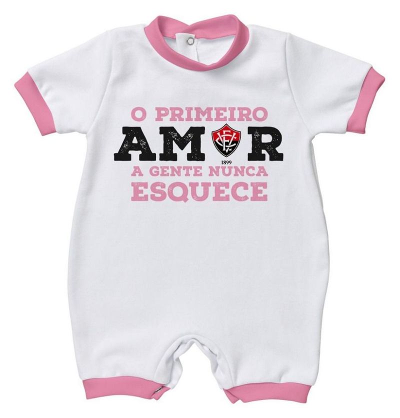 Macacão Bebê Vitória BA Primeiro Amor Rosa Oficial O macacão curto do Vitória possui uma linda estampa frontal, com a frase "O primeiro Amor a Gente Nunca Esquece", ideal para expressar toda paixão pelo Vitória desde os primeiros dias de vida. O Macacão é Confeccionado em malha, tem toque suave com a pele dos bebês e proporciona extrema sensação de conforto. Um produto que não pode faltar na coleção dos pequenos e já apaixonados torcedores. Características - Macacão manga curta. - Com o brasão do time. - Tecido leve e confortável. Especificações Técnicas Material: Malha Composição: 100% algodão. Idade Recomendada: Tamanho P (indicado para 2-3 meses): COMPRIMENTO 35 cm / LARGURA 25 cm Tamanho M (indicado para 3-6 meses): COMPRIMENTO 37 cm / LARGURA 27 cm Tamanho G (indicado para 6-9 meses): COMPRIMENTO 39 cm / LARGURA 29 cm Tamanho GG (indicado para 9-12 meses): COMPRIMENTO 41 cm / LARGURA 31 cm Conteúdo da Embalagem: 1 Macacão. Recomendações de uso: Seguir corretamente as instruções de lavagem da etiqueta. Produto Oficial Licenciado.