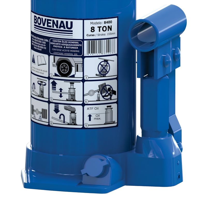 Macaco Garrafa 8 T Hidráulico MT8I Bovenau é a solução ideal para quem busca eficiência e segurança na elevação de veículos. Com a capacidade de carga de 8 toneladas, este macaco é perfeito para caminhonetes, caminhões e carretas de linha leve e pesada. A Bovenau, renomada no mercado global, oferece uma das maiores linhas de macacos hidráulicos tipo garrafa, garantindo qualidade e durabilidade. Este modelo permite uso na posição horizontal, desde que a catraca ou a bomba pneumática esteja posicionada na parte inferior, proporcionando versatilidade em diversas situações.A robustez do design do macaco Bovenau assegura uma operação segura e fácil, facilitando a troca de pneus e outras manutenções automotivas. Além disso, a construção sólida e os materiais de alta qualidade garantem uma longa vida útil, tornando-o um investimento inteligente para profissionais e entusiastas do setor automotivo.ESPECIFICAÇÕES TÉCNICAS:- Marca: Bovenau- Modelo: MT8I- Capacidade de carga: 8 toneladas- Altura de construção: 230 mm- Dimensões da base: 140x125 mm- Curso de elevação hidráulica: 155 mm- Curso de Fuso: 100 mm- Altura total: 485 mm- Comprimento da alavanca: 600 mm- Peso: 6,7 kg- Formato do macaco: Garrafa- Código universal de produto: 7898142331068ITENS INCLUSOS:- 1 Macaco Garrafa 8 T Hidráulico MT8I BovenauINSTRUÇÕES DE USO:1. Posicione o macaco sob o ponto de elevação do veículo.2. Certifique-se de que a alavanca esteja firmemente encaixada.3. Bombeie a alavanca para elevar o veículo até a altura desejada.4. Para uso horizontal, posicione a catraca ou bomba pneumática na parte inferior.5. Após o uso, libere a pressão lentamente para baixar o veículo com segurança.