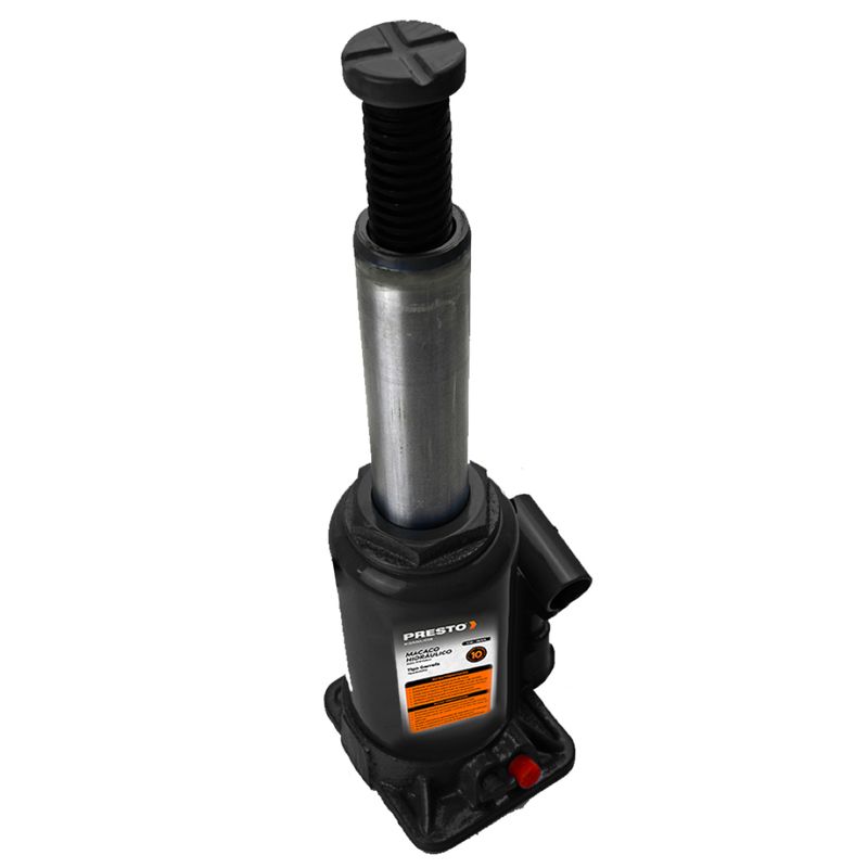 Código do Fornecedor: 96105 Marca: Presto Conteúdo da embalagem: 1 Macaco Hidráulico Garrafa 10 Toneladas Presto Especificações do Produto: Largura: 110 mmAltura: 200 mmProfundidade: 110 mmPeso: 4,98 kgCarga máxima: 10.000 kg Descrição:O Macaco Hidráulico Tipo Garrafa 10 toneladas da Presto é ideal para levantar veículos de porte médio com segurança e eficiência. Compacto e robusto, é essencial para oficinas mecânicas, borracharias e garagens, oferecendo uma solução confiável para diversas aplicações automotivas e industriais. Fabricado em aço de alta resistência, garante durabilidade e confiabilidade, mesmo em condições de trabalho intensas. O sistema hidráulico proporciona uma elevação suave e controlada, enquanto a alavanca ergonômica facilita o manuseio, tornando o processo mais eficiente e menos cansativo. O macaco é equipado com uma válvula de segurança que previne sobrecarga, assegurando a proteção tanto do equipamento quanto do operador. A base estável oferece maior segurança durante a operação, evitando acidentes e garantindo a estabilidade do veículo ou carga durante a elevação.Garantia: 12 mesesImagens meramente ilustrativas de responsabilidade do fornecedor