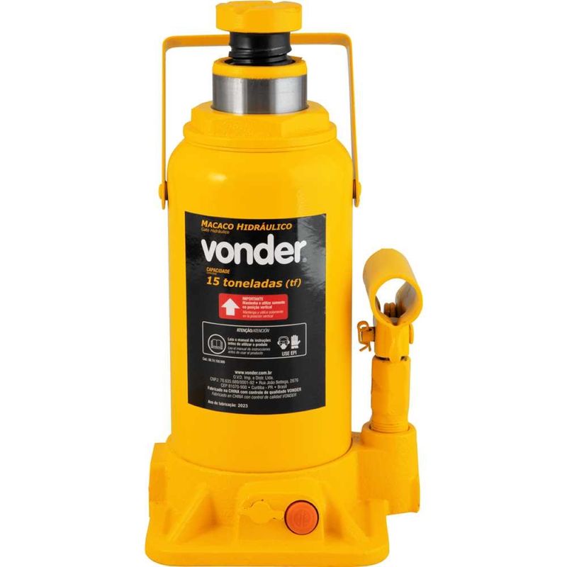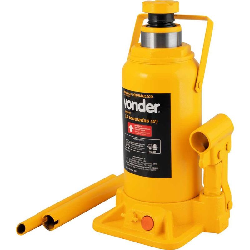 Conteúdo da embalagem1 Macaco hidráulico tipo garrafa com 1 cabo de acionamentoAplicações e dicas de usoIndicado para elevação de veículos ou cargas de acordo com sua capacidade. Usar, armazenar e transportar somente na posição vertical para evitar vazamento de óleo. Quantidade total de óleo hidráulico: 360 mlDestaques e diferenciaisPossui válvula de segurança para evitar elevação superior à sua capacidade, cabo dividido em 2 partes que facilita seu armazenamento e fuso de elevação com rosca que proporciona maior elevação e facilita o ajuste no momento da aplicação, além de alça que facilita o manuseio DETALHES TÉCNICOS Capacidade de carga do macaco hidráulico tipo garrafa: 15 toneladas Possui alça para movimentação: Sim Altura mínima do macaco hidráulico tipo garrafa: 230,0 mm Curso do pistão do macaco hidráulico tipo garrafa: 150,0 mm Curso do fuso do macaco hidráulico tipo garrafa: 80 mm Altura máxima do macaco hidráulico tipo garrafa: 460,0 mm Diâmetro do fuso do macaco hidráulico tipo garrafa: 40,0 mm Dimensões da base do macaco hidráulico tipo garrafa: 133 mm x 136 mm Prazo de garantia: 6 meses