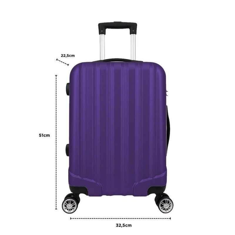 Mala de Bordo ABS 4 Rodas Action Fortt Roxa - MAB02-RXMala de Bordo ABS 4 Rodas Action Fortt Roxa - MAB02-RXA Mala de Bordo Adventure Fortt, foi desenvolvida com o que há de mais moderno.Ela é produzida em ABS, que é um material resistente e de fácil limpeza. Possui 4 rodas com giro de 360°, é equipada com cadeado fixo, com senha configurável para a proteção de seus itens e internamente, possui cintas elásticas para lhe ajudar na organização de seus pertences.Características Parte Externa:Pode ser utilizada como bagagem de mão em aviõesRodas removíveis: SimCor: PretoEstrutura rígida em ABSCadeado fixo com senha configurávelAlça de alumínio retrátil com regulagem de alturaAlça superior e lateral4 Rodas com giro 360ºParte Interna:Forro em nylonCinta elástica com travaBolso interno na tampaAmplo espaço interno2 Compartimentos internosDimensões externas:Altura com a alça totalmente esticada: 90cmAltura com a alça abaixada: 51 cmLargura: 32,2 cmProfundidade: 22,5 cmDimensões internas:Altura: 44 cmLargura: 32 cmProfundidade: 11 cmPeso suportado: 10 kgPeso: 2,4kgGarantia legal de 90 dias para defeito de fabricação.- Material resistente com um rigoroso controle de qualidade, unindo versatilidade, praticidade e durabilidade.- O tom da cor do produto pode variar de acordo com lote e/ou características do seu monitor ou tela.- Fotos Meramente ilustrativas.
