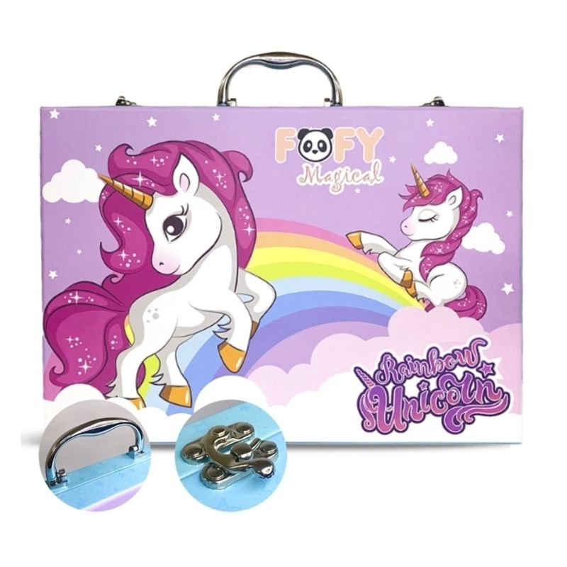 Maleta Artística Unicórnio 84 Peças - FOFY: A escolha perfeita para inspirar a criatividade dos pequenos! Essa maleta prática e resistente apresenta uma estampa encantadora de unicórnio, combinando estilo e funcionalidade. Com uma alça reforçada, é fácil de transportar, permitindo que as crianças levem suas aventuras artísticas a qualquer lugar! O conjunto inclui 84 peças de arte variadas, ideais para despertar o artista dentro de cada criança: 36 giz de cera com cores vibrantes, 12 lápis de cor para dar vida às ilustrações, 10 canetinhas para traços precisos, 8 papéis de unicórnio prontos para colorir, 18 cores de aquarela para um toque especial em suas criações. Indicações de Uso: Ideal para atividades de pintura e desenho em casa, na escola ou durante viagens. Estimula a coordenação motora fina e o desenvolvimento criativo. Perfeito para crianças a partir de 3 anos que adoram explorar novas cores e formas. Ótimo presente para festas de aniversário, datas comemorativas ou como incentivo educacional. Essa maleta é perfeita para estimular a imaginação e promover momentos divertidos e criativos! Tem alguma dúvida? Nossa equipe está pronta para ajudar no campo de perguntas ou via chat.