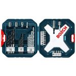 O Kit de pontas e brocas V-Line Bosch é um produto completo e ideal para quem busca praticidade para executar diferentes tipos de trabalho. O Kit inclui uma variedade de pontas e brocas, além de diversos acessórios que auxiliam em aplicações de aparafusamento, perfuração e fixação. O design das Pontas foi desenvolvido para evitar o desgaste da cabeça dos parafusos trazendo maior firmeza durante as aplicações, e possuem o encaixe em formato hexagonal que evita o deslizamento na ferramenta. São acompanhadas também por um suporte universal magnético que possibilita trocas rápidas e a fixação segura das pontas. O Kit possui um variado portfólio de brocas com diferentes diâmetros, sendo as de aço rápido para aplicações em metal, brocas com ponta de metal duro para perfurações em alvenaria, brocas de três pontas para madeira e as brocas planas em titânio que permitem perfurações em maiores diâmetros nos diferentes tipos de madeira. Com sua ampla variedade de acessórios, o Kit pode ser utilizado em diversas aplicações desde reparos, instalações e montagens, até pequenos trabalhos em obras, serralherias e marcenarias, além de acompanhar uma maleta robusta que facilita a armazenagem, transporte e acesso de todo o conteúdo de forma bastante organizada.Componentes incluídos na embalagem5 Brocas para Metal Ø2/3/3/3,2/4/4,2/5mm5 Brocas para Concreto Ø4/5/6/7/8mm5 Brocas para Madeira Ø3/4/5/6/7/8mm13 Pontas 25mm: PH1, PH2, PH3, PZ1, PZ2, S4, S6, S7, T15, T20,T25, T301 suporte universal magnético3 chaves de caixa para parafusos sextavados Ø7/8/10mm1 escareador1 maleta plástica para armazenamento.Possui Maleta Plástica para melhor armazenamento dos itens e cuidado com suas ferramentas, facilitando o manuseio e transporte.