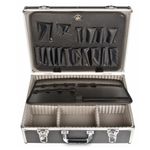Ideal para quem busca uma maneira sofisticada de transportas ferramentas e acessórios, a Maleta para Ferramentas Tramontina Pro 44952050 - Preta/Prata conta com amplo espaço interno e um design elegante para que você esteja pronto para todas as ocasiões. Elaborada com materiais de alta qualidade, ela dispõe de cantoneiras em aço carbono, placas de alumínio, divisória interna, placa porta-ferramentas, maior durabilidade e fechos que garantem a segurança dos seus pertences. Inove com a linha de produtos Tramontina Pro!