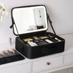 Maleta Preto Organizador para Maquiagem Espelho com LED USB ===================================== Maleta de Maquiagem com Espelho LED Beleza, Organização e Praticidade em Um Só Lugar Transforme sua rotina de cuidados com a beleza com a Maleta de Maquiagem com Espelho Iluminado. Elegante, funcional e portátil, ela é perfeita para quem busca organização, praticidade e uma iluminação ideal para makes impecáveis, seja em casa ou em movimento. ===================================== Contém: 01 Organizador 01 Cabo USB Especificações: - Medida: 10cm x 22cm x 25cm (aproximadamente) - Espelho com luz LED embutida - Led do Espelho Recarregável: USB - Divisórias internas ajustáveis - Design portátil e resistente - Espaço interno otimizado - Cor: Preto Benefícios: - Facilita a rotina com todos os itens de beleza sempre organizados e acessíveis - Proporciona iluminação adequada para qualquer ambiente, mesmo com pouca luz natural - Ideal para maquiadores, influenciadores, profissionais de beleza ou uso pessoal - Versátil e prática: perfeita para montar um camarim portátil em qualquer lugar - Ótima opção de presente sofisticado e funcional para quem ama maquiagem Diferenciais do Produto: - Espelho com luz LED para uma maquiagem mais precisa - Divisórias móveis que se adaptam a diferentes tipos de produtos - Estrutura resistente e acabamento sofisticado - Fácil de transportar, ideal para viagens e eventos ===================================== Devido à diferença entre monitores e iluminação diferentes, pode haver variação na tonalidade apresentada no anúncio. Medidas muito aproximadas.