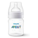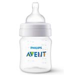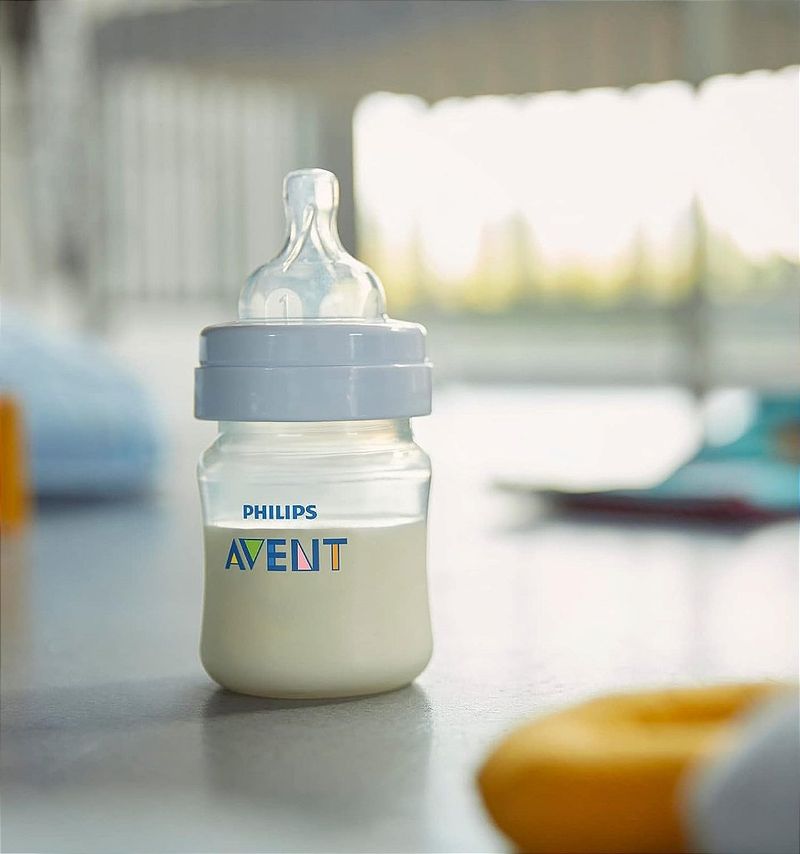 Mamadeira Anti-Colic Transparente 125 ml - Philips Avent A Mamadeira Avent Philips Anticolic é indicada para bebês, desenvolvida para ser fácil de segurar em qualquer direção. Foi projetada para manter o ar longe da barriga do bebê, reduzindo, assim, possíveis cólicas e desconforto, além de minimizar interrupções na alimentação. Com a válvula anticólica integrada, o ar é liberado para longe da barriga do bebê, ajudando a diminuir a agitação da criança causada por cólicas especialmente no período da noite. - Válvula anticólica exclusiva: nossa válvula anticólica clinicamente comprovada foi projetada para reduzir a ingestão de ar. - Clinicamente comprovada: estudos clínicos mostram que a mamadeira Philips Avent reduz as cólicas e a agitação. - Fácil de limpar: poucas peças para fácil limpeza e montagem. - Trava segura: o bico foi projetado para não se soltar, para uma trava segura e alimentação ininterrupta. Acompanha bico fluxo lento 0m+ "O MINISTÉRIO DA SAÚDE ADVERTE: A CRIANÇA QUE MAMA NO PEITO NÃO NECESSITA DE MAMADEIRA, BICO OU CHUPETA. O USO DA MAMADEIRA, BICO OU CHUPETA PREJUDICA O ALEITAMENTO MATERNO".