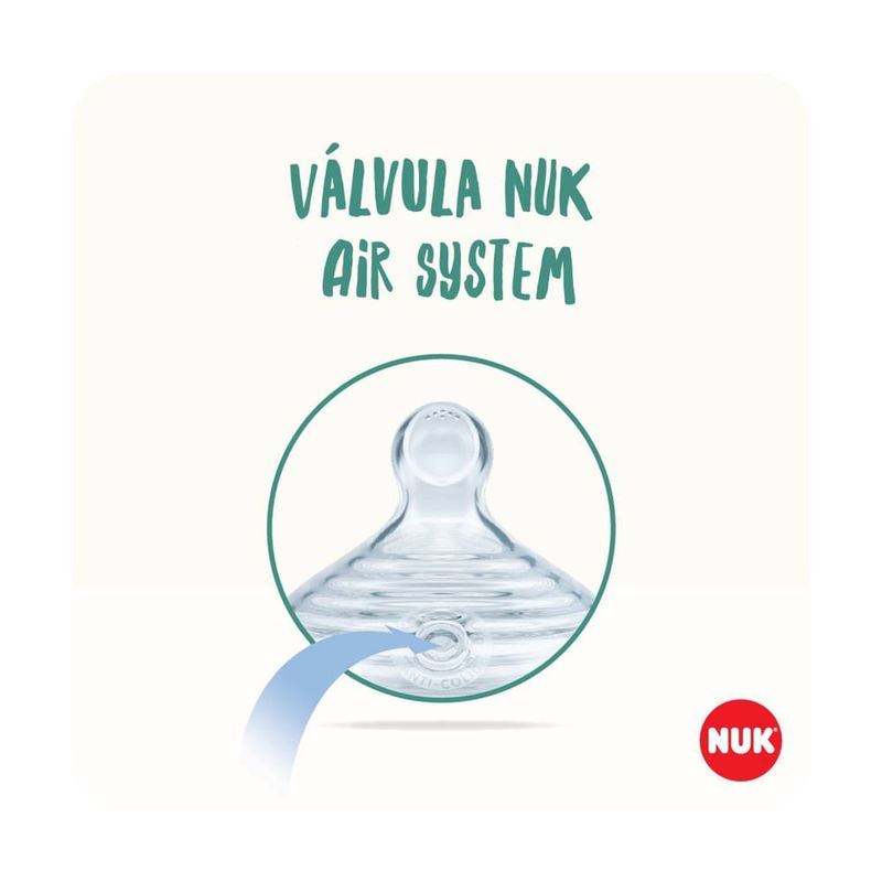 O que é a Mamadeira Anticólica NUK Essence Smart Flow? A Mamadeira Anticólica NUK Essence Smart Flow é uma solução inovadora para a alimentação do seu bebê. Fabricada com silicone macio e extra flexível, ela possui uma área Soft Zone com textura agradável que oferece um toque suave na boca e nos lábios do bebê. Com capacidade de 150ml, a mamadeira vem com um bico tamanho S, indicado para bebês de 0+ meses e perfeito para líquidos leves como leite materno, chá e água. Além disso, é livre de BPA, garantindo a segurança do seu bebê. Para que serve a Mamadeira Anticólica NUK Essence Smart Flow? A Mamadeira Anticólica NUK Essence Smart Flow foi projetada para oferecer uma alimentação confortável e segura para os bebês. Seu bico possui uma tecnologia inovadora de fluxo de líquidos com múltiplos furos, ajustando a saída do líquido conforme a consistência do alimento. O formato Oral Fit, com topo curvado e base angular, se adapta ao palato da criança, ajudando no posicionamento correto da língua durante a sucção. A válvula NUK Air System Anticólica reduz a formação e ingestão de bolhas de ar, prevenindo cólicas e desconfortos. O frasco ergonômico, com design anatômico e acinturado, facilita a pega e é super-resistente, oferecendo maior conforto durante a alimentação. Além disso, o indicador de controle de temperatura, localizado próximo à escala de graduação, sinaliza se o conteúdo está acima de 37ºC, mudando de cor para branco e indicando que é necessário esperar até retornar à cor azul para uma temperatura segura para o bebê.