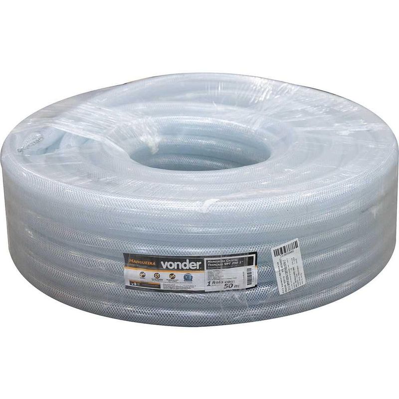 Conteúdo da Embalagem:1 Rolo com 50 metrosDescrição:Mangueira cristal trançada VPT 250 1" VONDERAplicações e dicas de uso: Indicada para condução de ar e água Destaques e diferenciais: Transparente com trança em poliéster que proporciona boa resistência Características Técnicas:Diâmetro interno da mangueira: 1" - 25,4 mmDiâmetro externo da mangueira: 33,4 mmCor da mangueira: TransparenteMaterial da mangueira: PVCPressão máxima de trabalho da mangueira (PSI): 250 lbf/pol²Comprimento da mangueira: 50,00 mEspessura da parede da mangueira: 4,00 mmGarantia legal: 90 dias + Garantia contratual: 3 meses