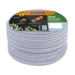 Já pensou em ter momentos prazerosos enquanto cuida do seu jardim? A mangueira flex Tramontina transparente em PVC 3 camadas 25 m com engate rosqueado e esguicho é perfeita e adequada para esta atividade. Ela agrega a resistência e a qualidade que você precisa, devido a ser revestida por 3 camadas. A camada evita que o produto se torça com facilidade e danifique o material. Além disso, ela conta com engate e esguicho proporcionando praticidade na realização do serviço. Para quem gosta de assistir o percurso da água, a mangueira é uma ótima escolha de aquisição. Tramontina unindo qualidade e resistência!Descrição técnica- Mangueira flexível e de fácil manuseio.- Possui 25 metros de comprimento.- Recomendada para situações de uso com pressão da água de até 10 bar [145 psi] e temperatura de 50 °C.- Para maior resistência possui 3 camadas distintas: interna em PVC, intermediária em fio de poliéster trançado e externa em PVC.- Acompanha 01 esguicho com jato regulável e 01 adaptador com engate rosqueado.- O esguicho possui prático sistema de regulagem do fluxo d'água através do regulador frontal.- O esguicho é conectado em mangueiras através de sistema de fixação rosqueado.Orientação Geral- A mangueira é recomendada para uso doméstico ou profissional na jardinagem, em situações com pressão da água de até 10 bar [145 psi].- Para aumentar a durabilidade da mangueira, não deixá-la exposta ao sol após o uso.- A temperatura máxima de trabalho da água deve ser 50 °C.- Use o enrolador de mangueira Tramontina para guardar a mangueira.- Para descarte dos produtos e embalagens siga as orientações de reciclagem vigentes. Garantia do produto: 90 dias de garantia de acordo com o Código de Defesa do Consumidor + a Garantia do Fabricante
