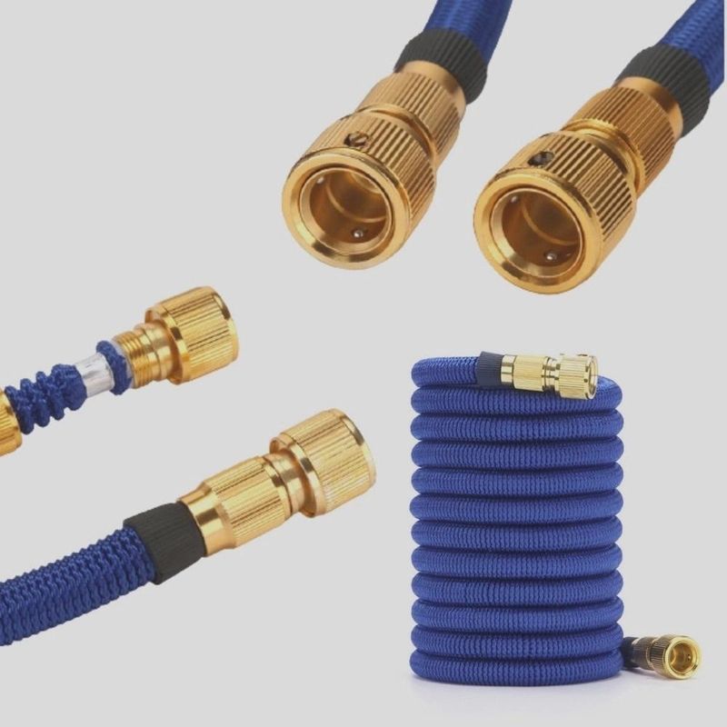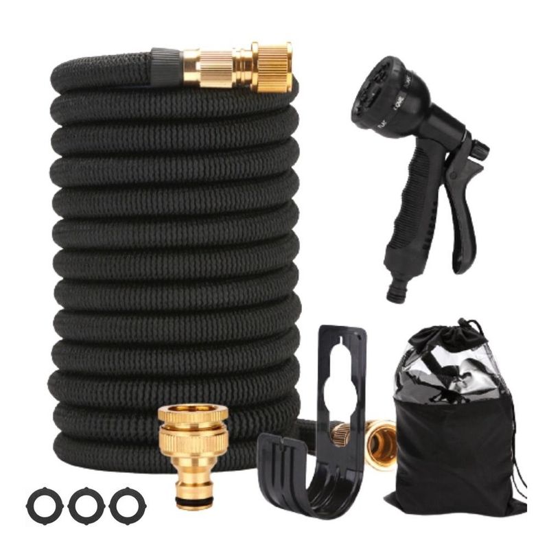 hMangueira mágica flexível e expansível com bico de alta pressão, perfeito para lavar carro, regar plantas e realizar limpezas em geral. Especificação do produto: - O Bico possui regulagens diferentes de pulverização de água - Material do esguicho: Metal - Material da Mangueira: tpe e Nylon - Sem esticar possui 7,5 metros de ponta a ponta - Expansivel chega até 30 metros Itens inclusos: 1 Sacola 1 Esguicho de Pulverização de água 4 Conectores conforme fotos ilustradas no anúncio 3 Anéis de borracha 1 Fita veda rosca 1 Suporte para sabão com 100 ml de capacidade 1 Mangueira flexível e expansível 1 Suporte de parede para a mangueira *Observação: As cores serão enviadas de acordo com a disponibilidade em estoque O PRODUTO PODERA SOFRER ALTERAÇÃO DE COR ENVIO EM COR ALEATORIA