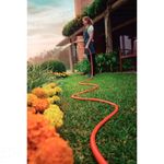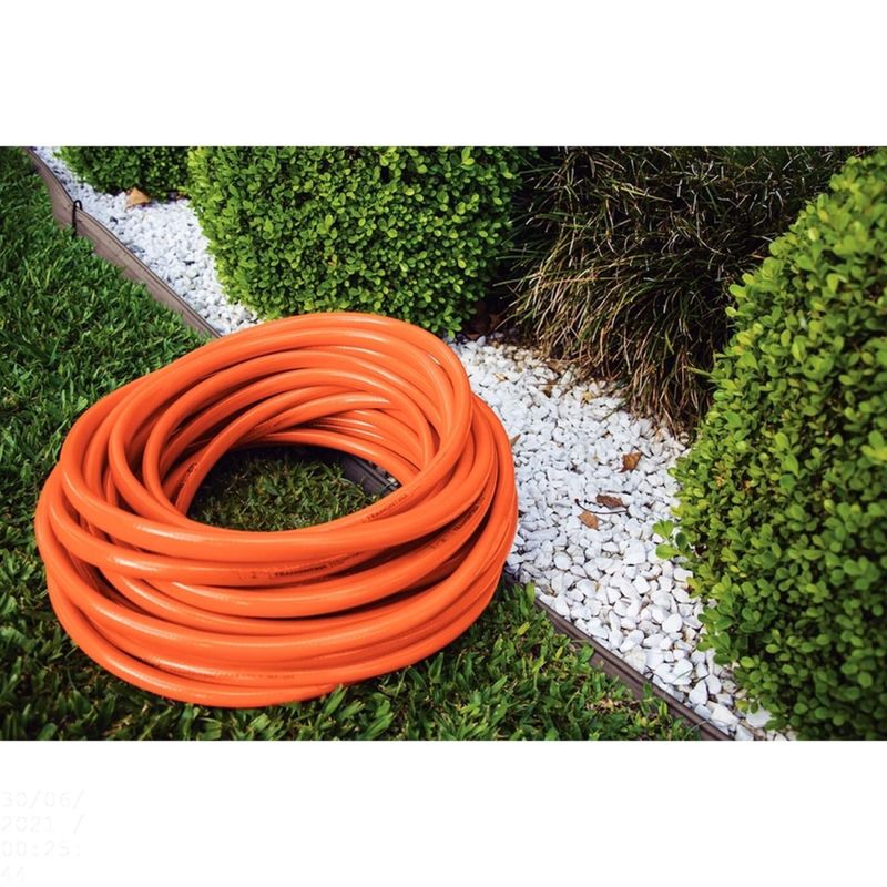 Mangueira Multi 1/2" Tramontina Laranja PVC 3 Camadas 20m Engates Rápidos, Esguicho Suporte Mural Tramontina - Nada como ter materiais que nos auxiliam na hora de cuidar dos cantinhos da nossa casa. A mangueira Multi 1/2" Tramontina laranja em PVC 3 camadas 20 m com engates rápidos, esguicho e suporte mural é ideal para a manutenção de jardins e hortas. Prática e confortável de usar, ela é produzida em PVC, material que garante alta flexibilidade e resistência. Possui 20 metros de comprimento, atingindo os lugares mais difíceis na hora de irrigar. Acompanha um esguicho com jato regulável, dois engates rápidos e um adaptador fêmea com rosca de 3/4 polegadas e redução de 1/2 polegadas. Leve mais prazer e cuidado para os espaços da sua casa. Orientações - Mangueira com alta flexibilidade e fácil manuseio.- Possui 20 metros de comprimento.- Recomendada para situações de uso com pressão da água de até 12 bar [174 psi] e temperatura de 50 °C.- Para maior resistência possui 3 camadas distintas: interna em PVC, intermediária em fio de poliéster trançado e externa em PVC.- Acompanha 01 esguicho com jato regulável, 01 suporte fixo para mangueira, 02 engates rápidos e 01 adaptador fêmea com rosca de 3/4" e redução de 1/2".- O esguicho possui prático sistema de regulagem do fluxo d'água através do regulador frontal.- O esguicho é conectado em mangueiras de 1/2", 5/8" e 3/4" através de sistema de engate rápido. Características Gerais EAN13 7891117101529 DUN14 17891117101526 NCM 3917.39.00 3,4130 kg. 3,5600 kg. Metragem 0,014601 m³. 392x 335x 130 mm. Cor 1 FFA500 Hexa Observações - A mangueira é recomendada para uso doméstico ou profissional na jardinagem, em situações com pressão da água de até 12 bar [174 psi].- Para aumentar a durabilidade da mangueira, não deixá-la exposta ao sol após o uso.- A temperatura máxima de trabalho da água deve ser 50 °C.- Para descarte dos produtos e embalagens siga as orientações de reciclagem vigentes. Características Gerais do Produto: Garantia: • 1 Ano
