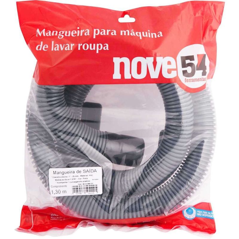 Mangueira Saída Para Máquina de Lavar, Preta Nove54 - Conteúdo da embalagem: 1 Mangueira de saÃda. Aplicação: Indicada para saÃda de água em máquinas de lavar roupas e louças. Destaques: Fácil de instalar. Acompanha curva. Garantia - E (CDC): Garantia legal: 90 dias + Garantia contratual: 3 meses Referência: 8032000131 Cor da mangueira: Preto Material da mangueira: PVC Diâmetro interno: 1" - 25,4 mm Comprimento da mangueira: 1,3 m Diâmetro do bocal da mangueira: 1.3/16" Massa aproximada (peso): 0.142 kg Destaques Comercial: Fácil de instalar. Acompanha curva. Aplicação Comercial: Indicada para saÃda de água em máquinas de lavar roupas e louças. Características Gerais do Produto: Garantia: • 3 Meses