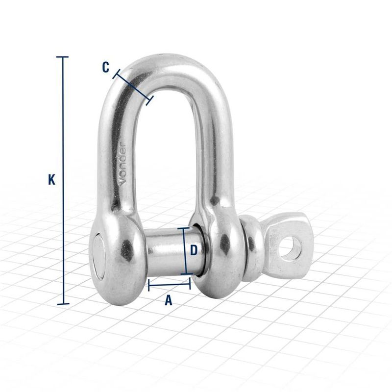 Manilha Reta Para Cabo de Aço, 1/2", aço Inox, Vonder OstenVonder - Conteúdo da embalagem: 1 Manilha reta. Aplicação: Indicada para unir lances de cabo de aço e correntes, recomendada para aplicações leves, não deve ser usada em aplicações de movimentação de cargas como tração, elevação ou estaiamento de torres. A medida da manilha deve ser compatÃvel com o diâmetro do cabo. Destaques: Fabricada em aço inox 304, proporcionando excelente resistência à oxidação/corrosão. Referência: 3564000120 Garantia - E (CDC): Garantia legal: 90 dias Tipo de acabamento: Inox Massa aproximada (peso): 0.251 kg Material da manilha: Aço inox Medida da manilha: 1/2" - 12,70 mm Diâmetro do corpo da manilha (C): 12,7 mm Diâmetro externo do olhal da manilha (F): 30,0 mm Abertura entre olhais da manilha (A): 20,5 mm Altura total da manilha (K): 77,0 mm Carga de trabalho da manilha: 2,00 tf Norma de referência da manilha: N/A Diâmetro do pino da manilha (D): 16,0 mm Fator de segurança da manilha: 4:1 Comprimento do pino da manilha reta (M): N/A mm Largura externa da manilha (E): N/A mm Destaques Comercial: Fabricada em aço inox 304, proporcionando excelente resistência à oxidação/corrosão. Aplicação Comercial: Une cabos de aço e correntes em aplicações leves. Não usar para elevação, tração ou estaiamento. Características Gerais do Produto: Garantia: • 3 Meses