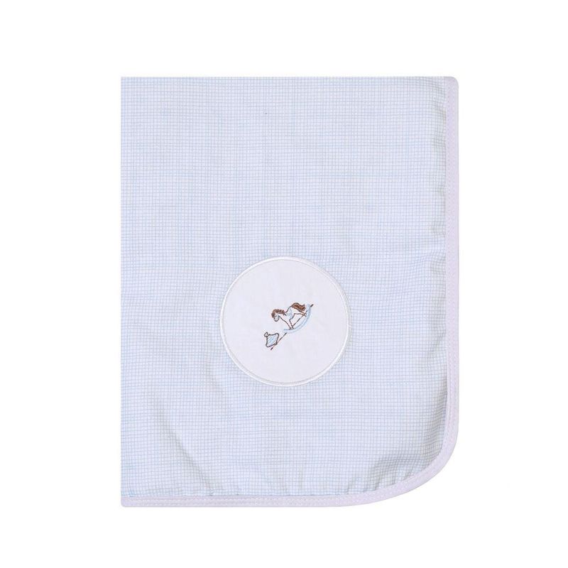 Manta Bebê Flanelada Forrada Cavalinho Papi 1,0m x 75cm Nossa Manta de malha Bordados Papi é feita em tecido 100% algodão, possui bordados super fofos e modernos. Usada para enrolar e proteger o bebê, nos primeiros meses de vida. Seu tamanho é de 1,0m x 75cm, e seu acabamento em viés e bordado em uma lateral trazem um charme ainda maior. • UTILIDADE: para enrolar e proteger o bebê, nos primeiros meses de vida. • Manta forrada, tecido flanela. • DESENHOS BORDADOS: em um dos cantos da mantinha, super fofos! • CORES SUPER DELICADAS E MODERNAS: escolha entre 6 opções. • TECIDO 100% ALGODÃO: super macio e confortável. • Nossos produtos são feitos com todo cuidado e carinho. • Medidas: 1,0mcm x 75cm. • Contém 1 unidade na embalagem.