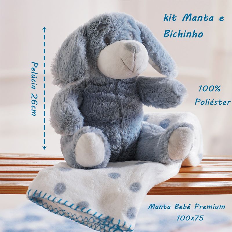 Manta e Bichinho KazzaVip Baby Pelúcia 100% Poliéster Microfibra Dog Azul