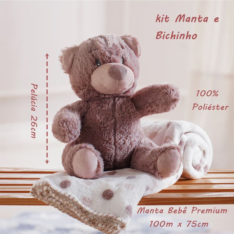 Manta e Bichinho KazzaVip Baby Pelúcia 100% Poliéster Microfibra Urso Bege