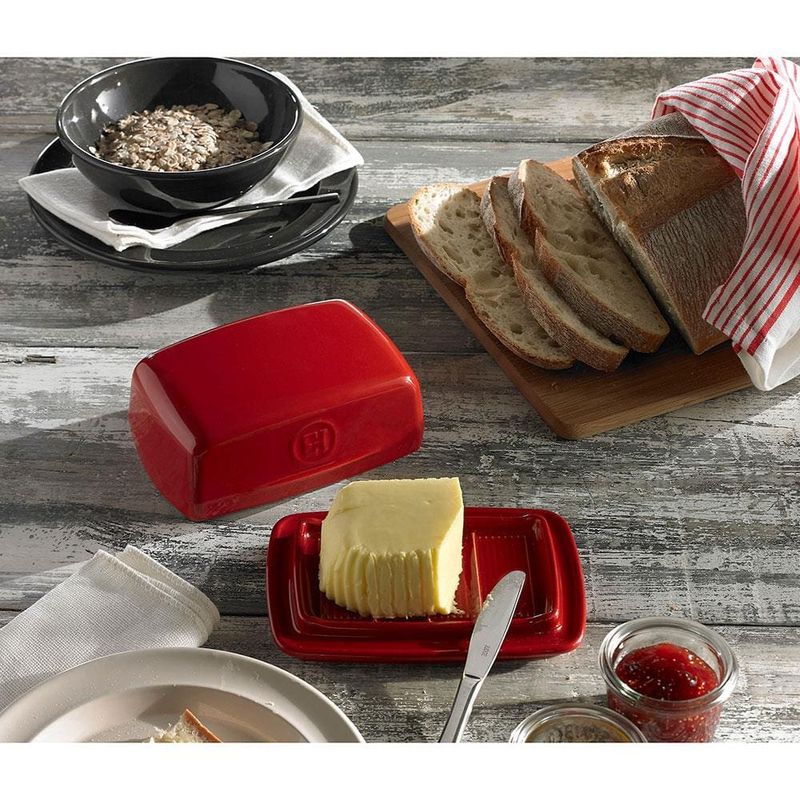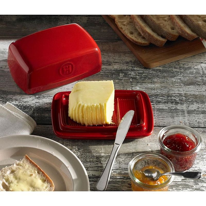 Se você se preocupa com a saúde sabe que a manteiga é a melhor opção em relação a margarina, pois é mais natural e não possui gorduras trans. Entretanto, pode ser que você se preocupe quanto ao armazenamento desse produto, pois se colocado na geladeira enrijece e adquire uma consistência sólida, e quando mantido em temperatura ambiente sem proteção tende a se tornar líquido mudando completamente o sabor. Dessa forma, adquirir a Manteigueira Emile Henry é a solução para esse problema, pois somente ela irá manter a temperatura, consistência e condição ideal para consumo!Esse modelo possui base e tampa que se encaixam perfeitamente, protegendo o interior da luz e do ar. Assim, a manteiga irá permanecer pastosa e fresquinha durante todo o consumo!Fabricada em Cerâmica HR® (High Resistance) de alta durabilidade e resistente a choques térmicos, ela também possui design robusto, elegante e moderno, perfeito para combinar com a decoração de sua cozinha ou mesa posta.