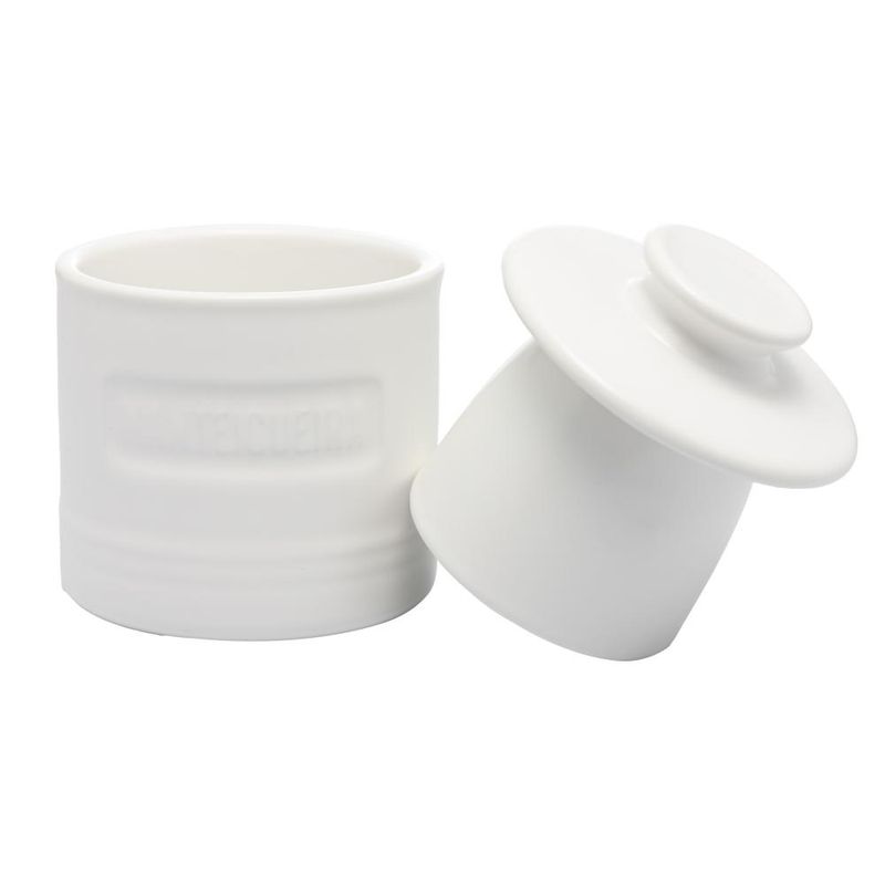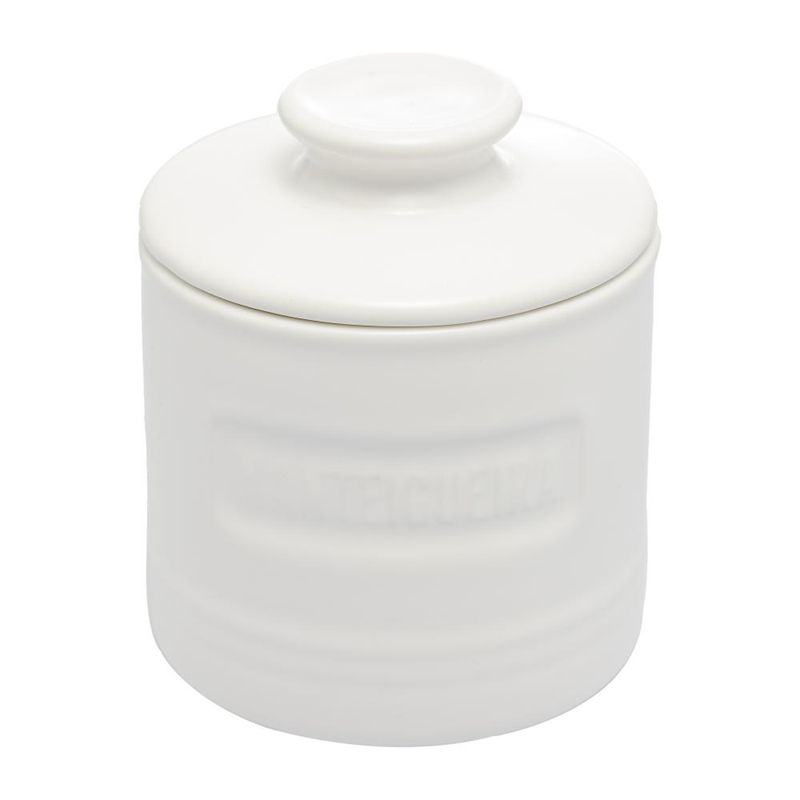 Manteigueira Wolff Francesa de Cerâmica e Tampa Branca Matte Contém: 1 ManteigueiraLava Louça: NãoMicroondas: NãoForno: NãoFogão: NãoFreezer: NãoMedidas Produto: Altura 10,00cm x Largura 8,00cm x Comprimento 8,00cmPeso: 0,43KgCor: BrancoMaterial: CerâmicaLavar com detergente neutro, esponja macia e secar imediatamente.